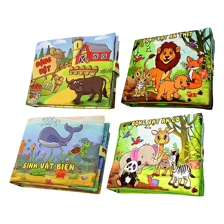 - Bộ 4 Sách Vải Pipovietnam (Sinh Vật Biển - Động Vật Ăn Cỏ - Ăn Thịt - Động Vật Nuôi) là bộ sản phẩm làm bằng chất liệu vải có chức năng như một đồ chơi lại có nhiều kiến thức cho bé học tập. Bộ sách vải an toàn này giúp bé tìm hiểu về chủ đề các sinh vật sống dưới biến, động vật ăn cỏ, động vật ăn thịt và những con vật nuôi.