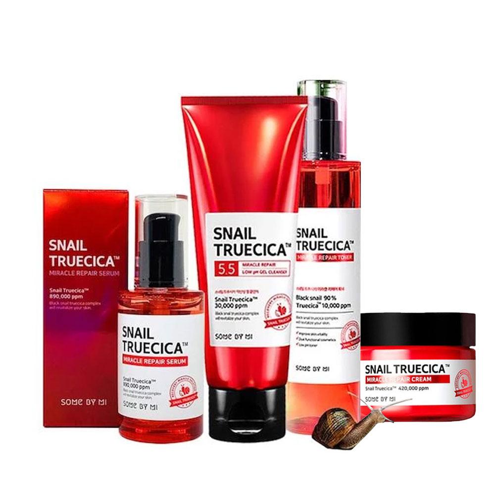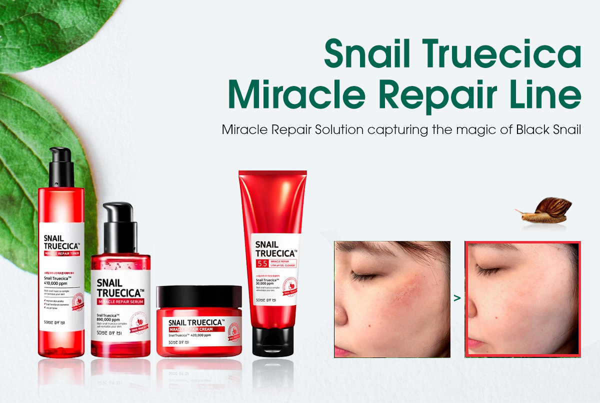 Bộ dưỡng giúp phục hồi và làm lành sẹo chứa chiết xuất từ dịch nhầy ốc sên đen và công nghệ độc quyền TrueCica giúp làm lành các tổn thương trên bề mặt da,cải thiện tình trạng sẹo lõm đồng thời ngăn ngừa tình trạng da ửng đỏ do kích ứng,mụn viêm và ô nhiễm môi trường.