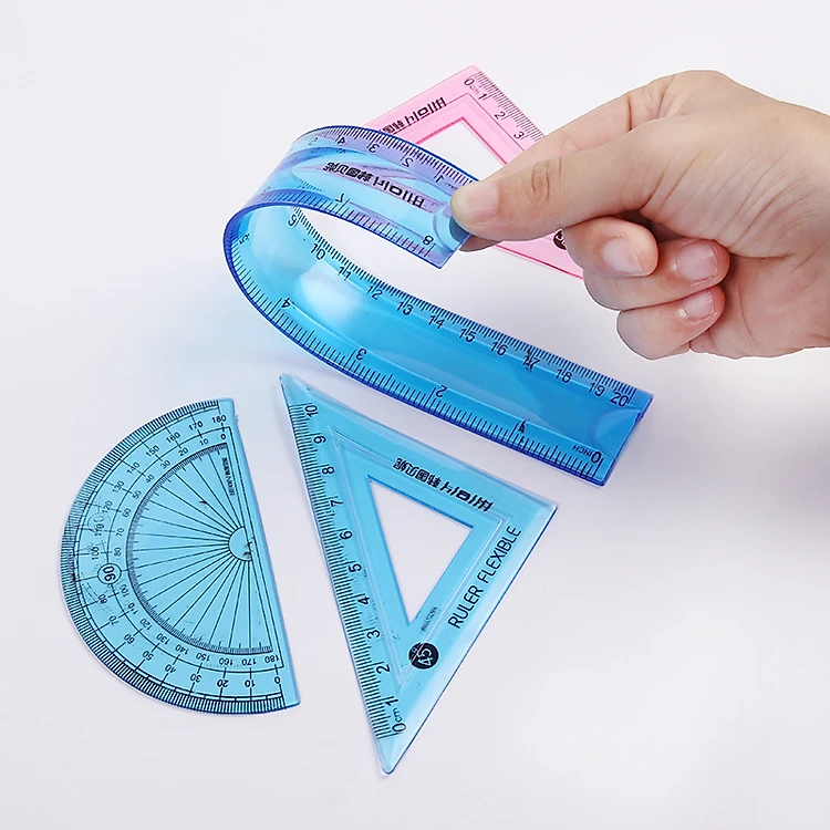 Bộ 4 thước kẻ dẻo mềm không gãy cho học sinh gồm 1 thước thẳng, 2 ê ke và 1 thước đo độ