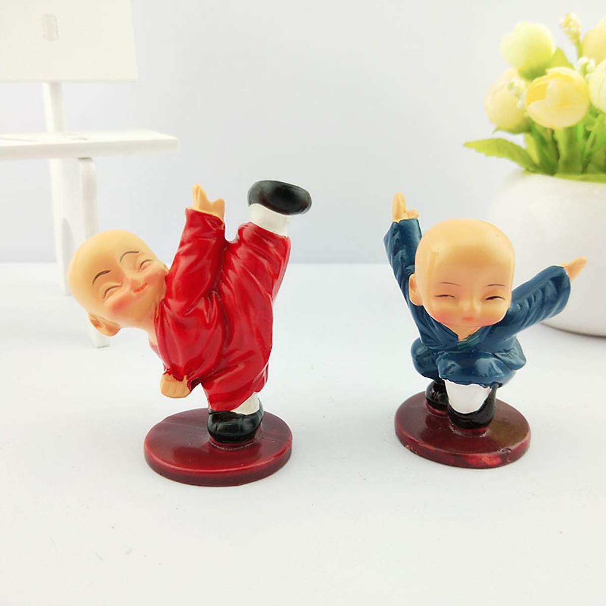 Bộ 4 Tượng Chú Tiểu múa đá chân cao 7CM - 4 Màu trang trí