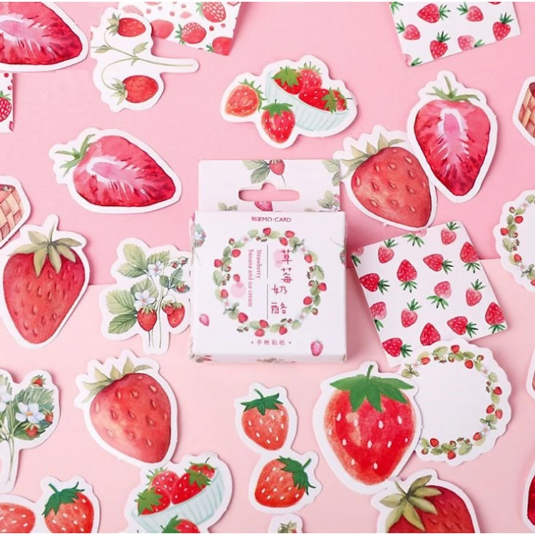 Hộp gồm 45 miếng dán quả dâu ngọt ngào vô cùng dễ thương.