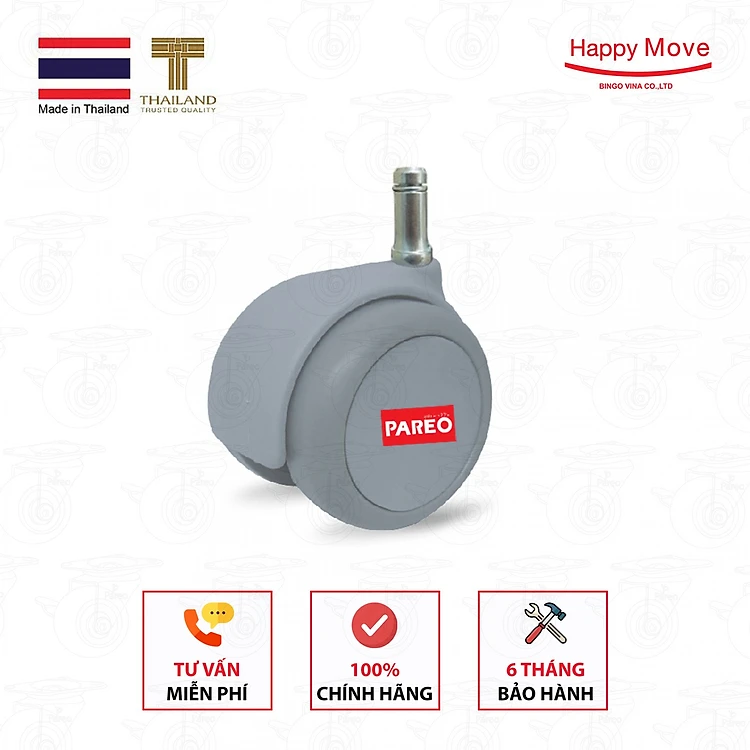 Bộ 5 bánh xe ghế xoay văn phòng Happy Move Thailand - Cọc grip ring (1PR-2630JNO050K20)