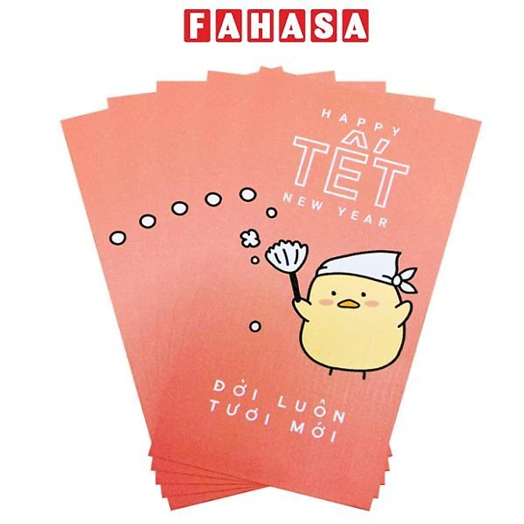 Bộ 5 Bao Lì Xì Tết Bính Ngọ 2026 - Futurebook L388 - Đời Luôn Tươi Mới - Màu Cam