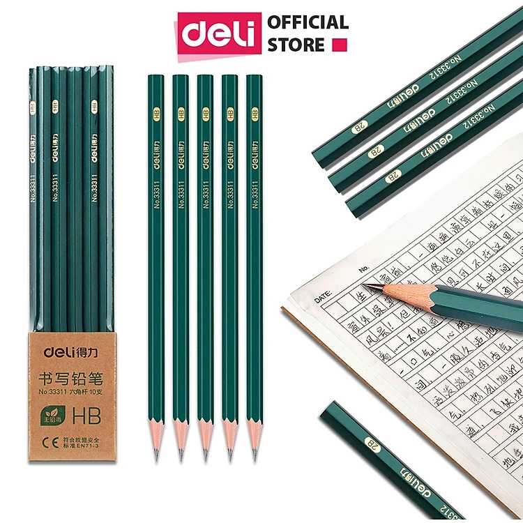 Bút Chì Lục Giác 2B HB Deli - Bút Chì Gỗ Thi Trắc Nghiệm Ruột Đậm Bút Chì Học Sinh Cấp 1 Tập Viết Chì Vẽ Phác Thảo