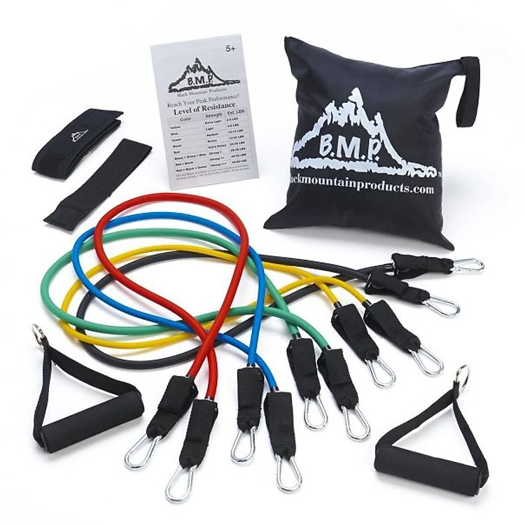 Bộ dây đàn hồi tập thể hình cao cấp có 5 dây, mỗi dây có mức trọng lượng khác nhau, từ nhẹ tới nặng (8 lbs, 15 lbs, 20 lbs, 25 lbs, 30 lbs) có thể tập riêng từng dây, hoặc kết hợp 2 dây, 3 dây, 4 dây, 5 dây.