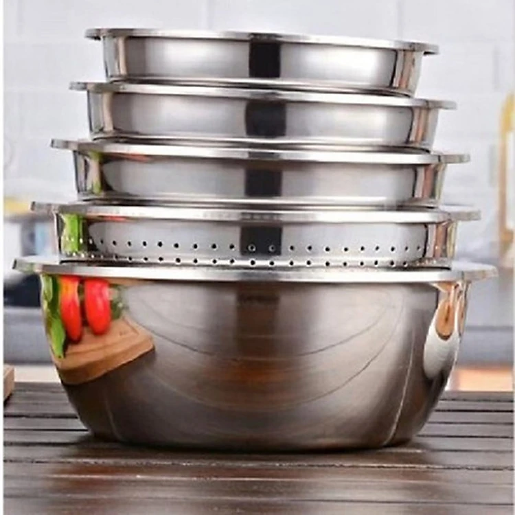 Bộ thau rổ inox 5 chiếc là bộ sản phẩm cực kì hữu dụng và thiết thực cho công đoạn sơ chế thức ăn hàng ngày của bất kì gia đình nào. Sản phẩm không chứa chất gây hại cho sức khỏe người dùng, an toàn đối với thực phẩm, đồng thời mang tính thẩm mỹ cao so với các sản phẩm bằng nhựa thông thường.
