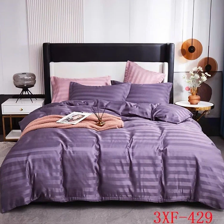 Bộ 5 món vỏ chăn drap gối cotton lụa 3F sọc 3 phân cao cấp A - dành cho khách sạn, homestay, nhà nghỉ ( hàng loại 1)