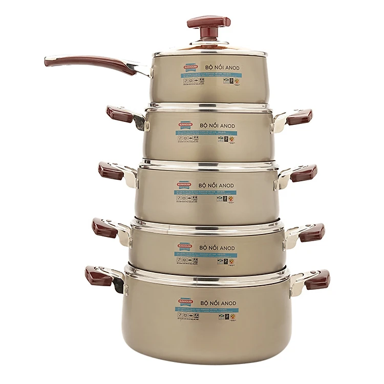 Bộ 5 Nồi Anod Vung Kính Sunhouse SH9951 Màu Đồng (18cm, 20cm, 22cm, 24cm, 26cm)