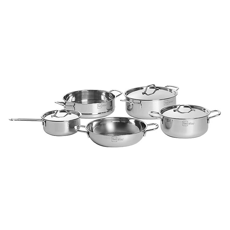 Bộ 5 Nồi Inox 430 3 Đáy Sandwich Nắp Inox Fivestar 08 pcs FS08C2 sử dụng nguyên liệu Inox cao cấp 304 thiết kế với kiểu dáng đẹp, chắc chắn, chất lượng cao