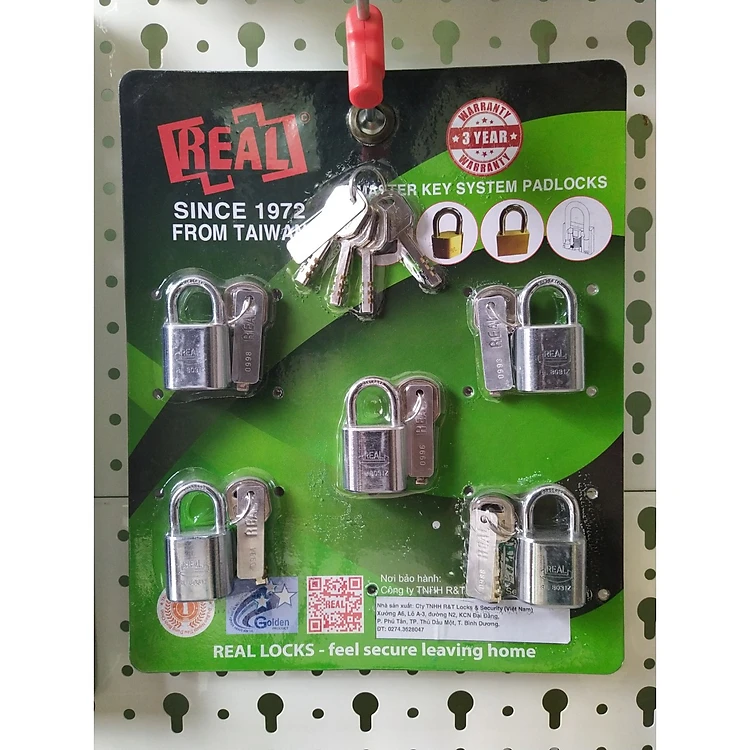 Bộ 5 ổ khoá móc kẽm 30mm, móc 6mm kèm chìa chủ hiệu Real M5RL8031Z