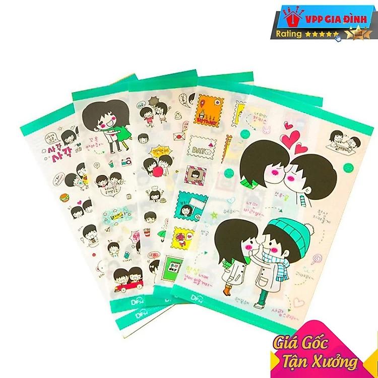 Bộ 5 Tấm Nhãn Dán Sticker Trang Trí Nhật Ký Tình Yêu Màu Xanh Lá Ff026