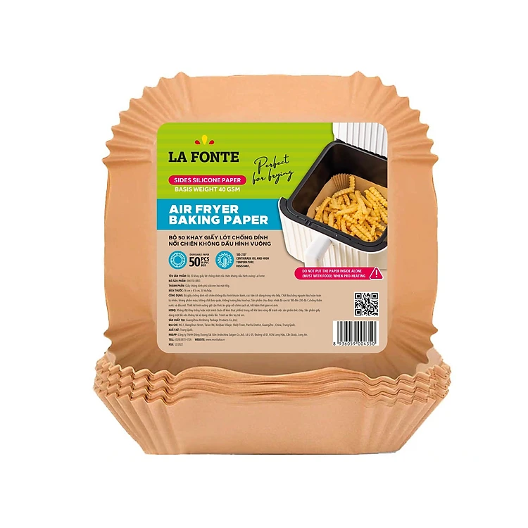 Bộ 50 khay giấy lót chống dính nồi chiên không dầu hình vuông Lafonte 004350-BRO - Hàng chính hãng