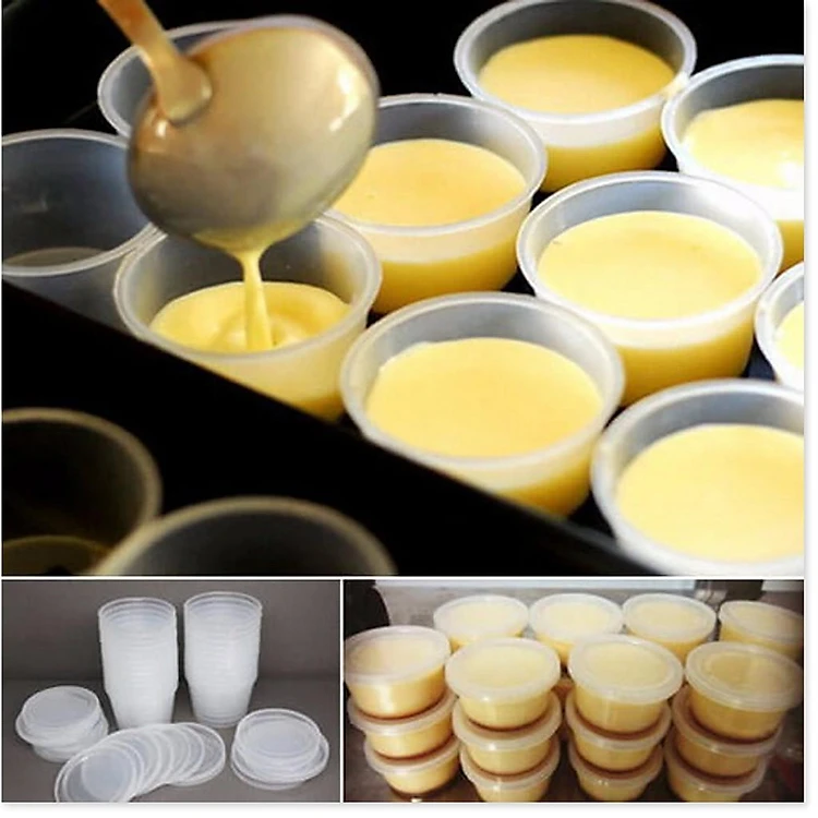 Bộ 50 khuôn bánh flan hình tròn có nắp đậy