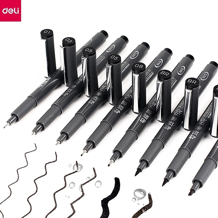 Bộ 6 cây Bút đi nét - Bút vẽ kỹ thuật mực đe - vẽ caligraphy phác thảo mực đen kháng nước Deli S573