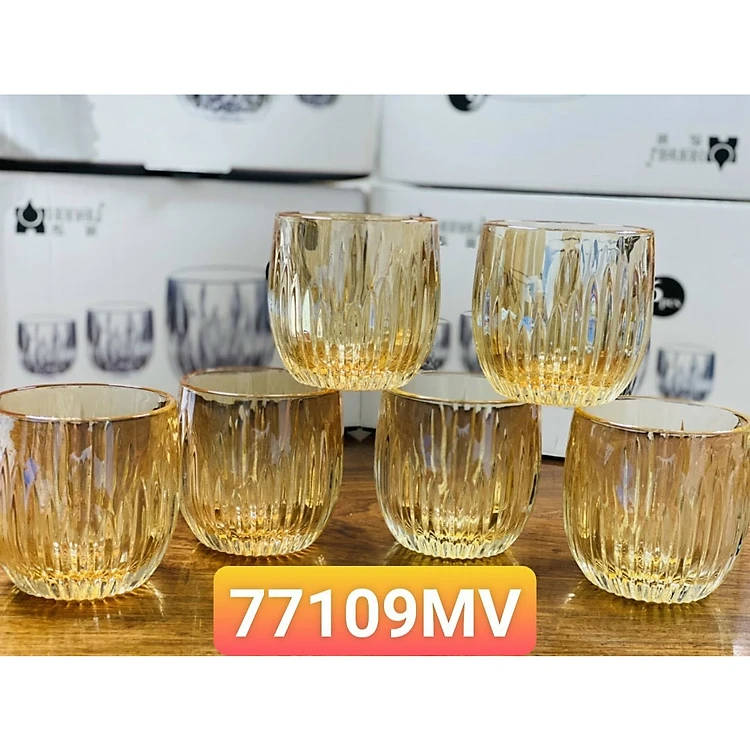 BỘ 6 CỐC THỦY TINH UỐNG NƯỚC, CÀ PHÊ CAO CẤP VÂN SÓNG DỌC - VD716