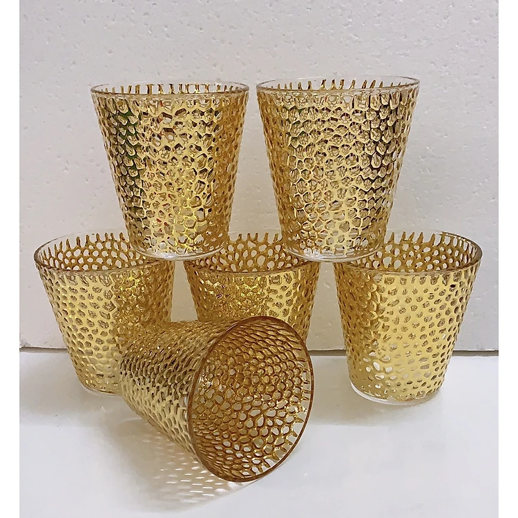 BỘ 6 CỐC THỦY TINH UỐNG NƯỚC MẠ VÀNG VÂN DẬP NỔI - VD40