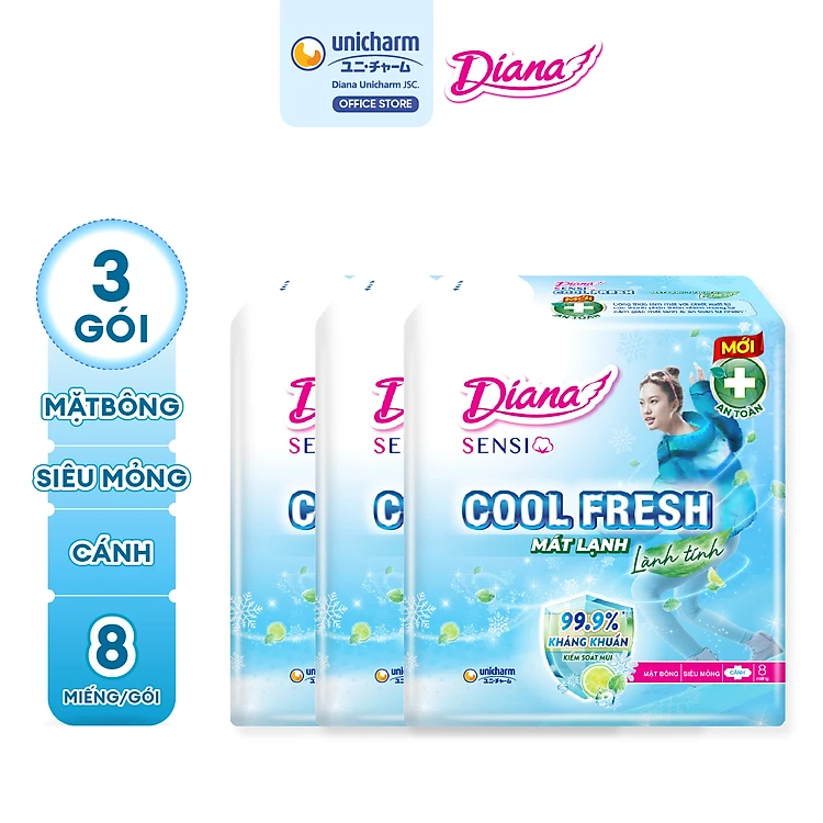 Bộ 6 Gói Băng Vệ Sinh Diana SenSi Cool Fresh Siêu Mỏng Cánh (8 Miếng/Gói)