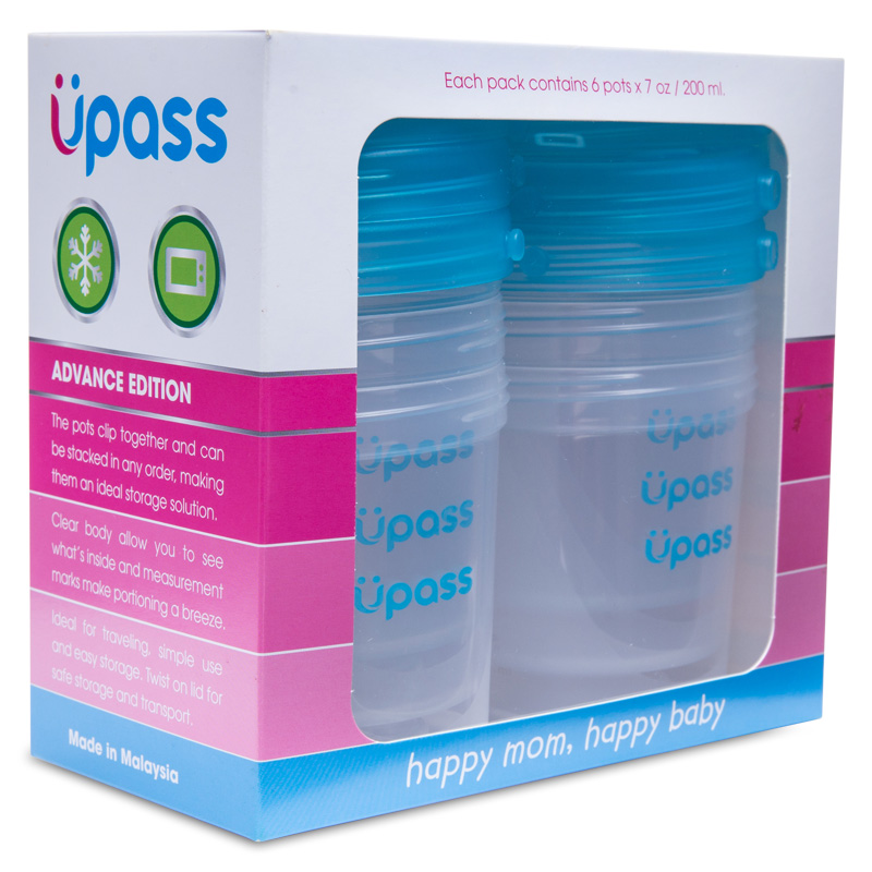 Bộ 6 hộp đựng sữa mẹ và thức ăn cho bé Upass 200ml