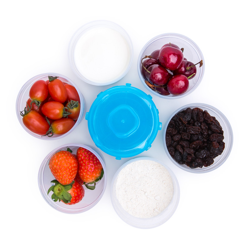 - Thiết kế thông minh giúp mẹ có thể gắn các hộp với nhau một cách gọn gàng để mang đi hoặc để trong ngăn lạnh.