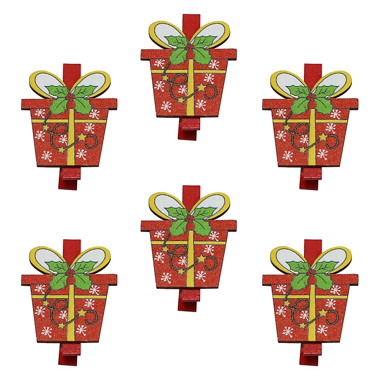 Bộ 6 Kẹp Ảnh Gỗ Trang Trí Giáng Sinh - Hộp Quà Giáng Sinh