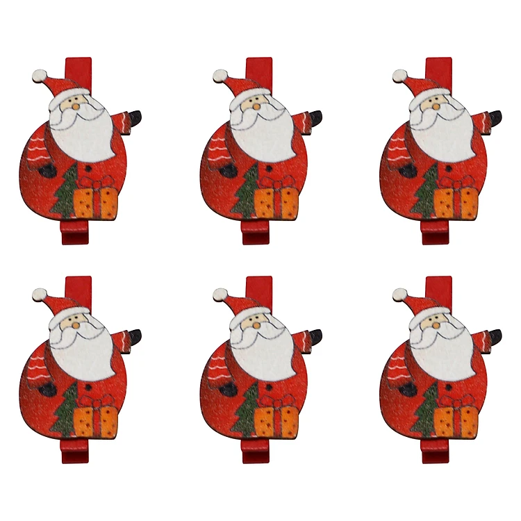 Bộ 6 Kẹp Ảnh Gỗ Trang Trí Giáng Sinh - Ông Già Noel Và Hộp Quà