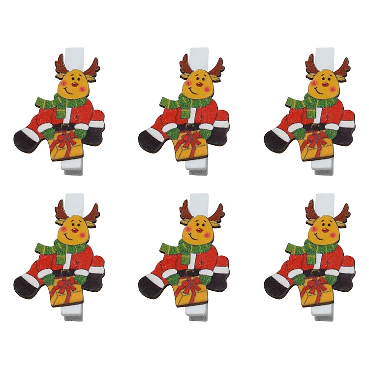 Bộ 6 Kẹp Ảnh Gỗ Trang Trí Giáng Sinh - Tuần Lộc