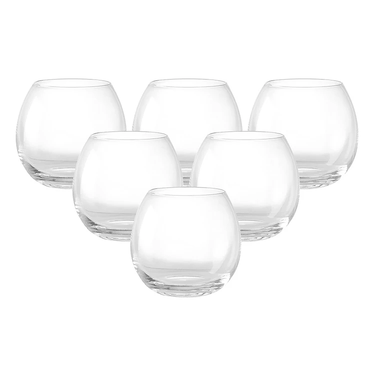 - Mỗi ly nước có dung tích 395ml được thiết kế theo kiểu dáng ly tròn không đế sẽ khiến cho bàn tiệc trở nên sang trọng hơn bao giờ hết. Sản phẩm thường được dùng để thưởng thức các loại rượu mạnh, có thể dùng với đá viên.
