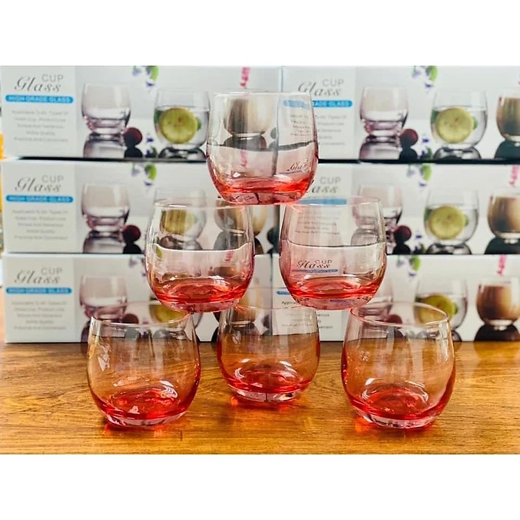Bộ 6 ly thủy tinh chịu nhiệt cao cấp dùng uống nước hoặc rượu tây tròn trứng đỏ