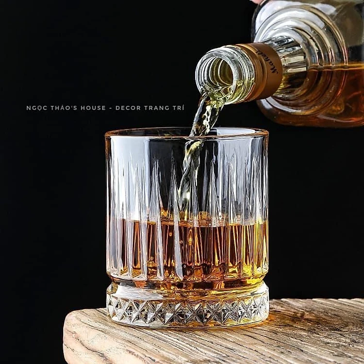 Bộ 6 ly thủy tinh chịu nhiệt cao cấp dùng uống nước hoặc rượu tây vân sọc viền vàng