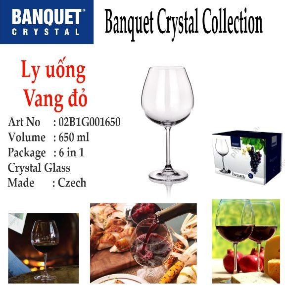 - Bộ 6 ly thủy tinh pha lê cường lực uống vang 650 ml Tiệp Khắc