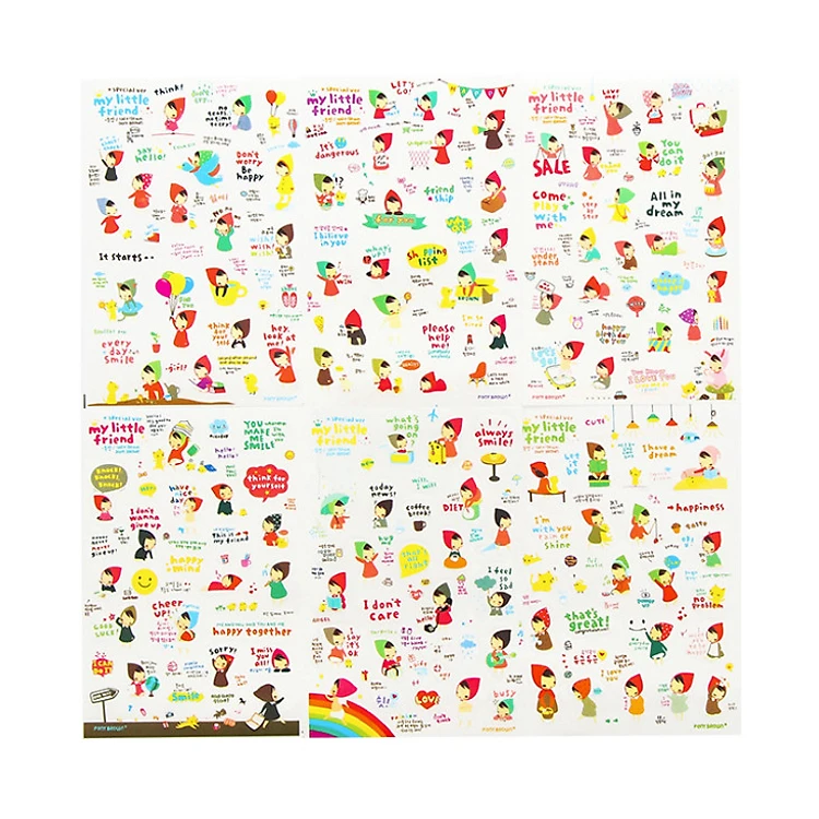- Bộ 6 tấm sticker cô bé quàng khăn đỏ dựa những những hoạt động hàng ngày của nhân vật cổ tích nổi tiếng sẽ mang lại cho bạn nhiều điều thú vị