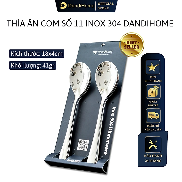 Bộ 6 thìa muỗng inox 304 DandiHome 2020 cao cấp, sang trọng, tinh tế