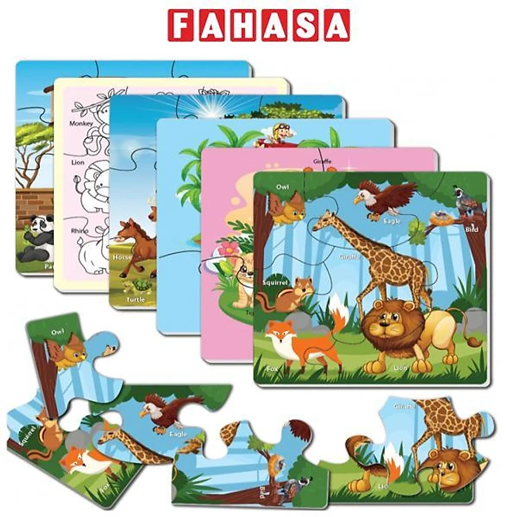 Bộ 6 Tranh Xếp Hình 6 Cấp Độ 17 x 17 cm - Động Vật Hoang Dã - Minh Châu C6-002