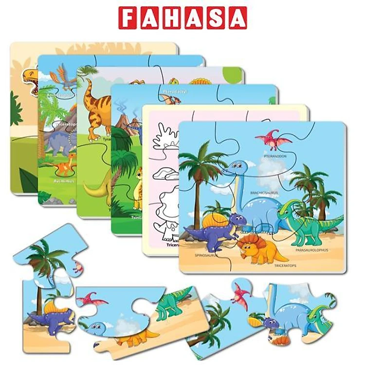 Bộ 6 Tranh Xếp Hình 6 Cấp Độ 17 x 17 cm - Thế Giới Khủng Long - Minh Châu C6-001