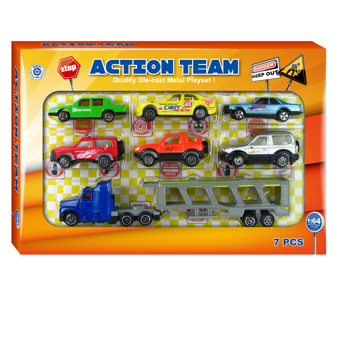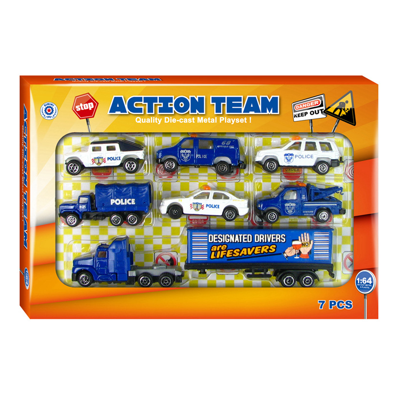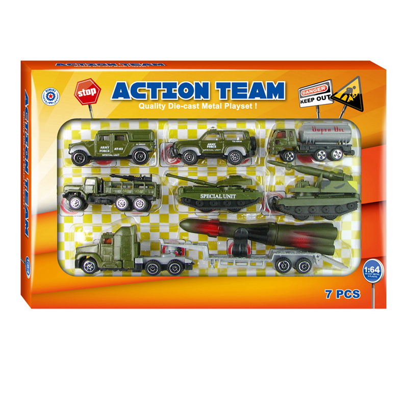 - Bộ 7 Xe Mô Hình Action Team - Bằng Sắt là một trong những mô hình được nhiều bé trai yêu thích. Thiết kế theo mô hình xe đặc chủng của quân đội, công an, xây dựng...mang lại nhiều trải nghiệm thú vị cho bé.