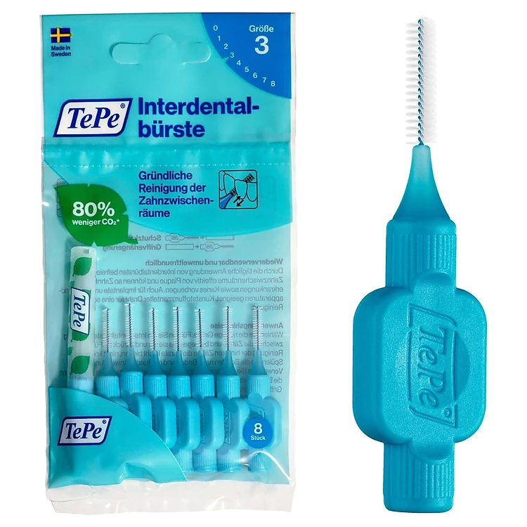 Bộ 8 cây tăm chải kẽ răng cơ bản và 1 nắp Tepe Interdental Brush Original (dạng bịch)