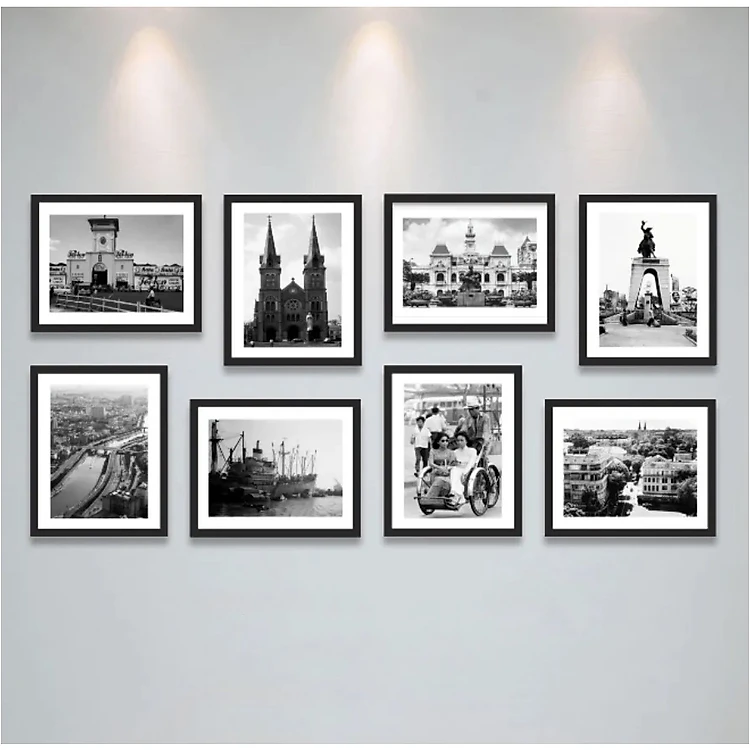 Bộ 8 Khung ảnh treo tường Hà Nội xưa- Sài Gòn xưa trang trí quán(Tặng đinh 3 chân)