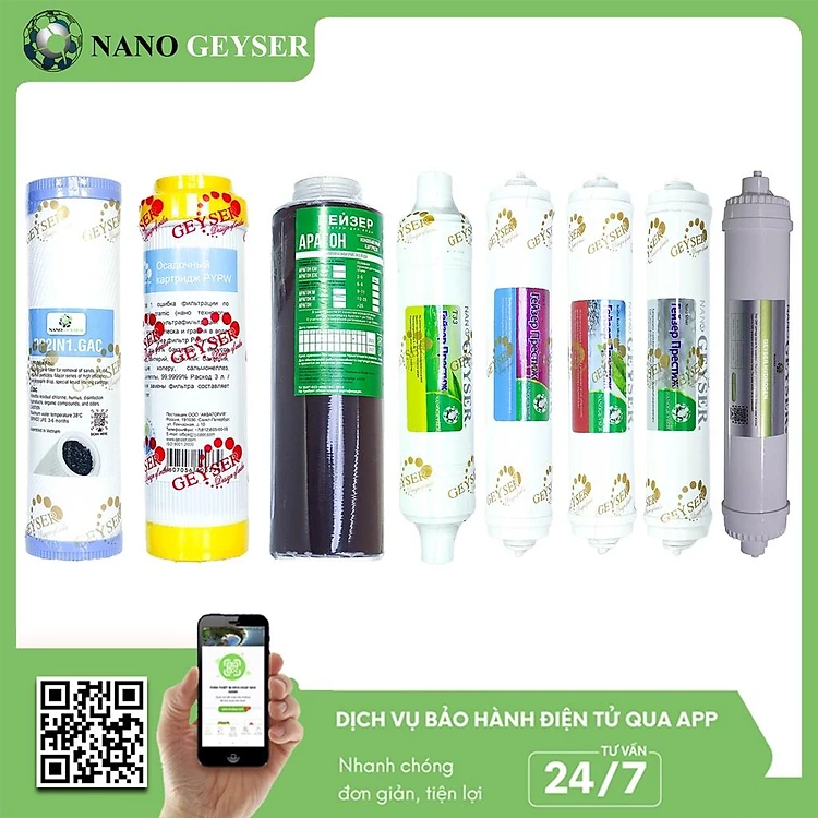 Bộ 8 lõi lọc nước dùng cho các dòng máy NANO, Nano Geyser Eco, Ecotar, TK,... - Hàng Chính Hãng