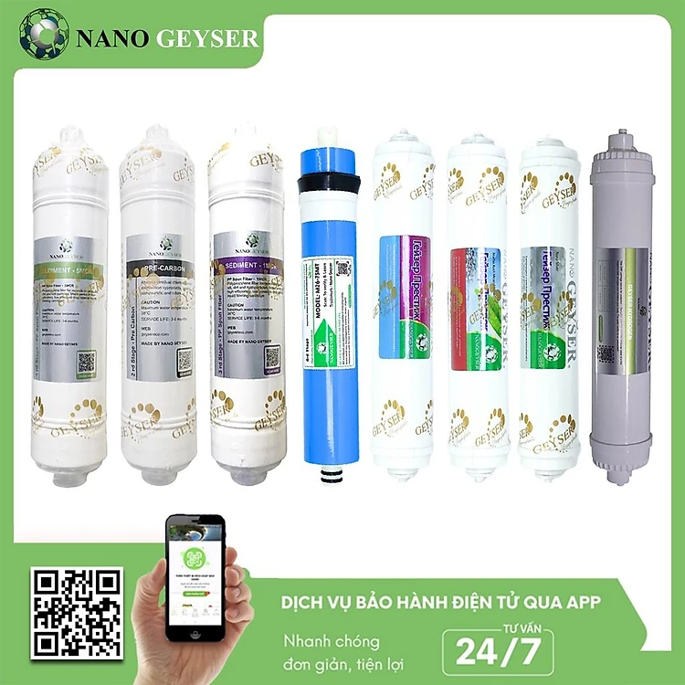 Bộ 8 lõi lọc nước dùng cho các dòng máy RO lõi đúc, Nano Geyser Slim, Karofi, Kangaroo, Aqua, Sunhouse - Hàng Chính Hãng