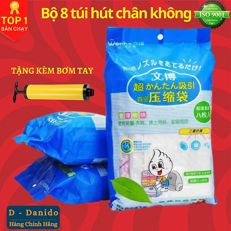 Bộ 8 túi hút chân không tặng kèm bơm hút chân không đựng quần áo, chăn màn, ga gối gọn gàng D Danido