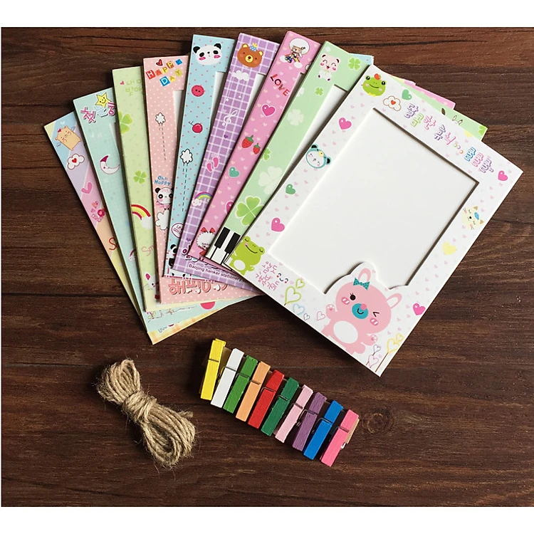 - Bộ sản phẩm gồm 9 khung hình bìa + dây thừng + 9 kẹp gỗ, cho bạn thỏa sức trưng bày các loại tranh ảnh yêu thích, tô điểm không gian sống thêm sinh động.