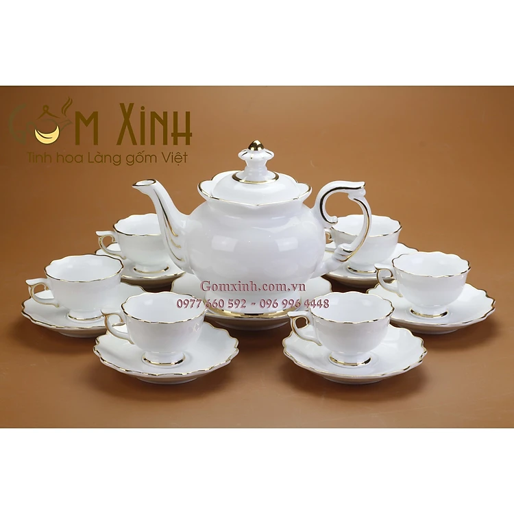 Bộ ấm chén Bát Tràng_Bộ trà Phú Quý vàng kim miệng lượn