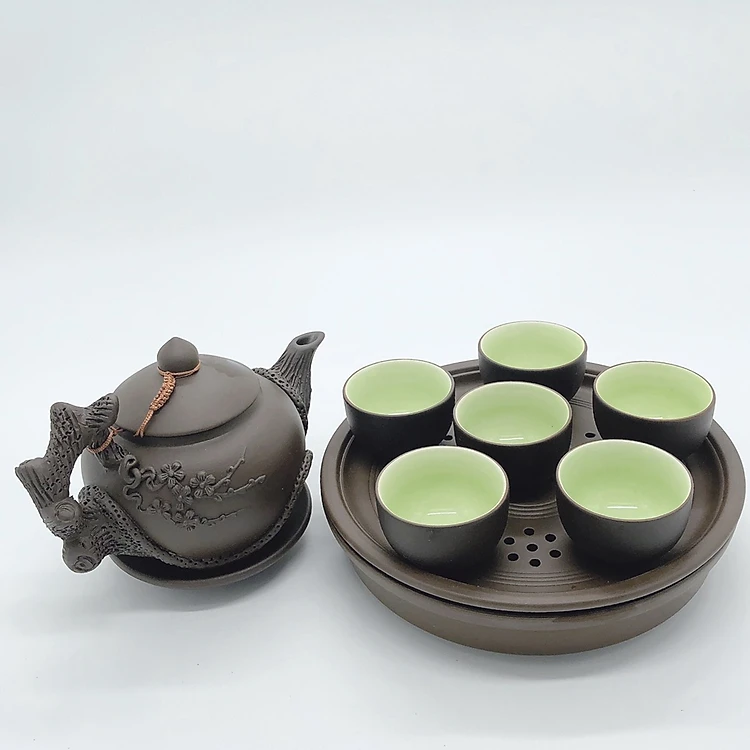 Bộ ấm chén / bộ bình trà gốm cội nguồn đắp nổi (dáng 2 khay)