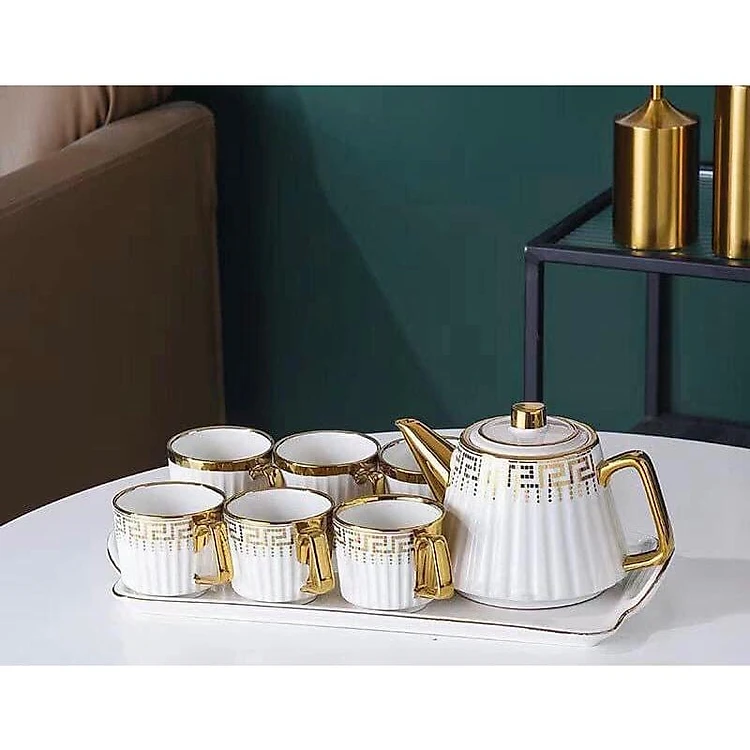 BỘ ẤM CHÉN KÈM KHAY SỨ PHA TRÀ CÀ PHÊ VÂN SỌC HỌA TIẾT MẮT XÍCH