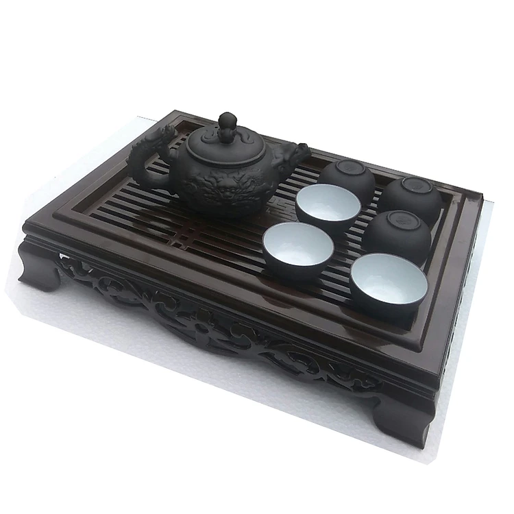 Bộ ấm chén khay trà gốm tử sa đẩu rồng nâu đen HB16