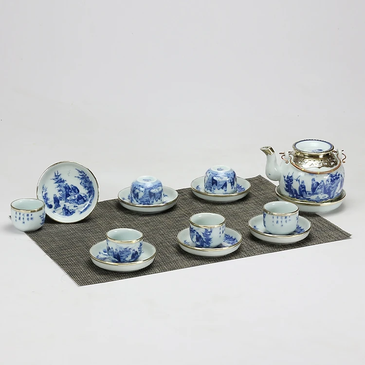 Bộ ấm chén men lam bọc đồng lõm chính hãng gốm sứ Bảo Khánh Bát Tràng - bình trà, bộ bình uống trà cao cấp