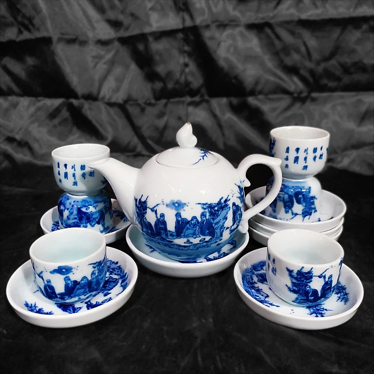 Bộ ấm chén men lam số 1 cỡ lớn gốm sứ Bát Tràng (bộ bình uống trà, bộ bình trà)