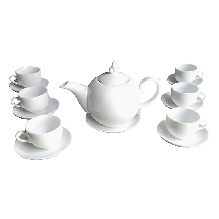 Bộ ấm chén men trắng chóp lửa gốm sứ Bát Tràng (bộ bình uống trà, bình trà)