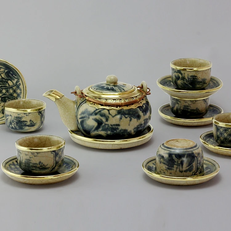 Bộ ấm chén Nhật men rạn bọc đồng gốm sứ Bát Tràng (bộ bình uống trà, bình trà)