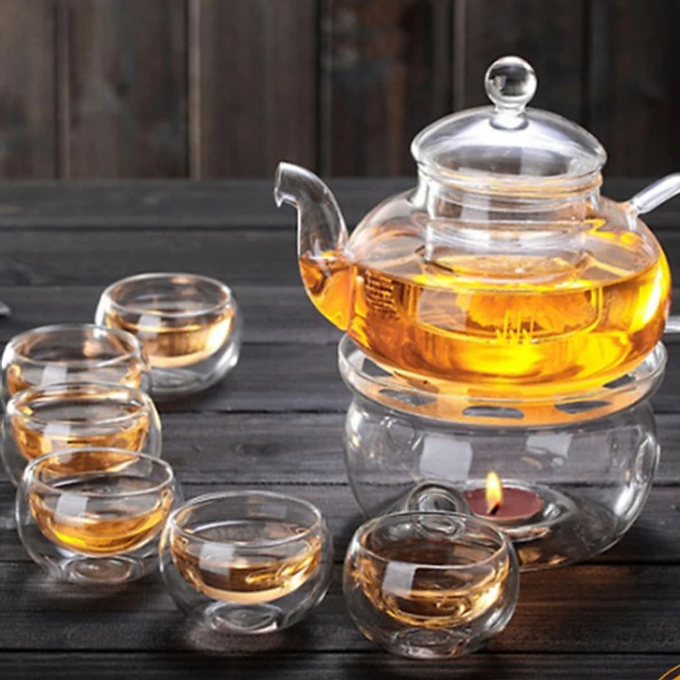 BỘ ẤM CHÉN PHA TRÀ KÈM ĐẾ CHÂM NẾN TRÒN THỦY TINH - ANTH569